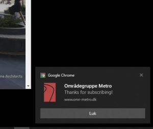 4. Du modtager nu en notifikation på din browser eller melding fra klokke iconet – som takker dig for at abonnere!